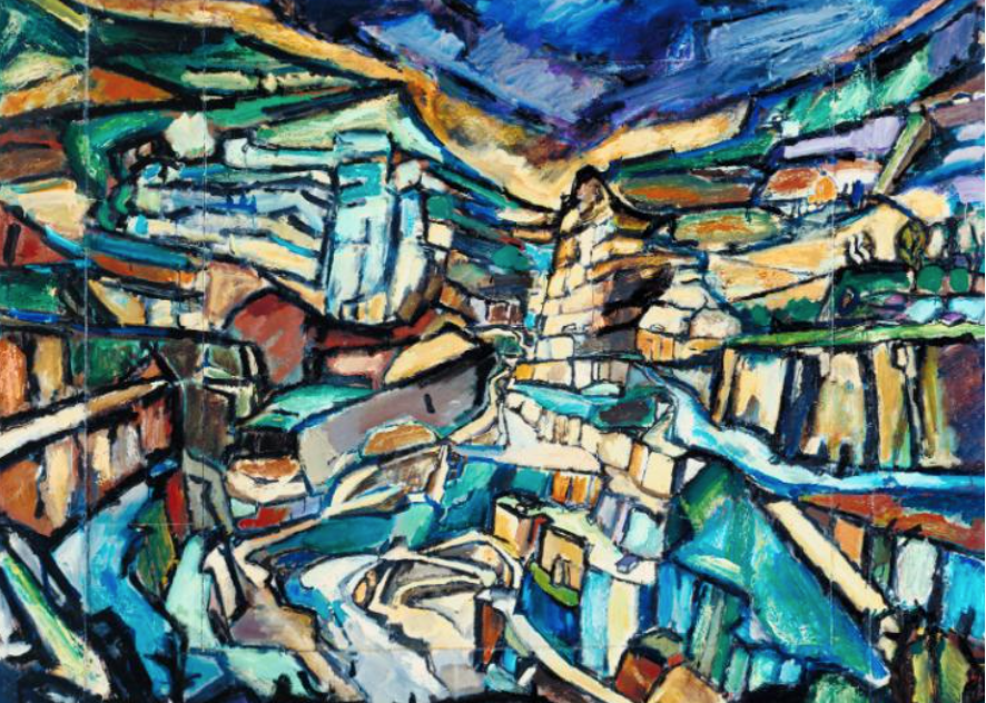 With Wales celebrating the slate landscape of North West Wales' UNESCO World Heritage status we thought we'd celebrate with this work of Peter's which is part of the The Tate collection. For over a decade the Bethesda Quarry was a source of inspiration in his work, he described it as "the biggest man-made hole in Europe, like Bruegel's Tower of Babel, but in reverse". He spent countless days up there drawing and learning about the area from the quarrymen. By the time Peter died, the quarry had stopped allowing slate to be sold for headstones but made an exception for the family. Shortly after his death, his sons, Owein and Emil, were shown to the area Peter had worked, where they found slate with distnictive green running through it. This now forms a spectacular headstone to his grave.