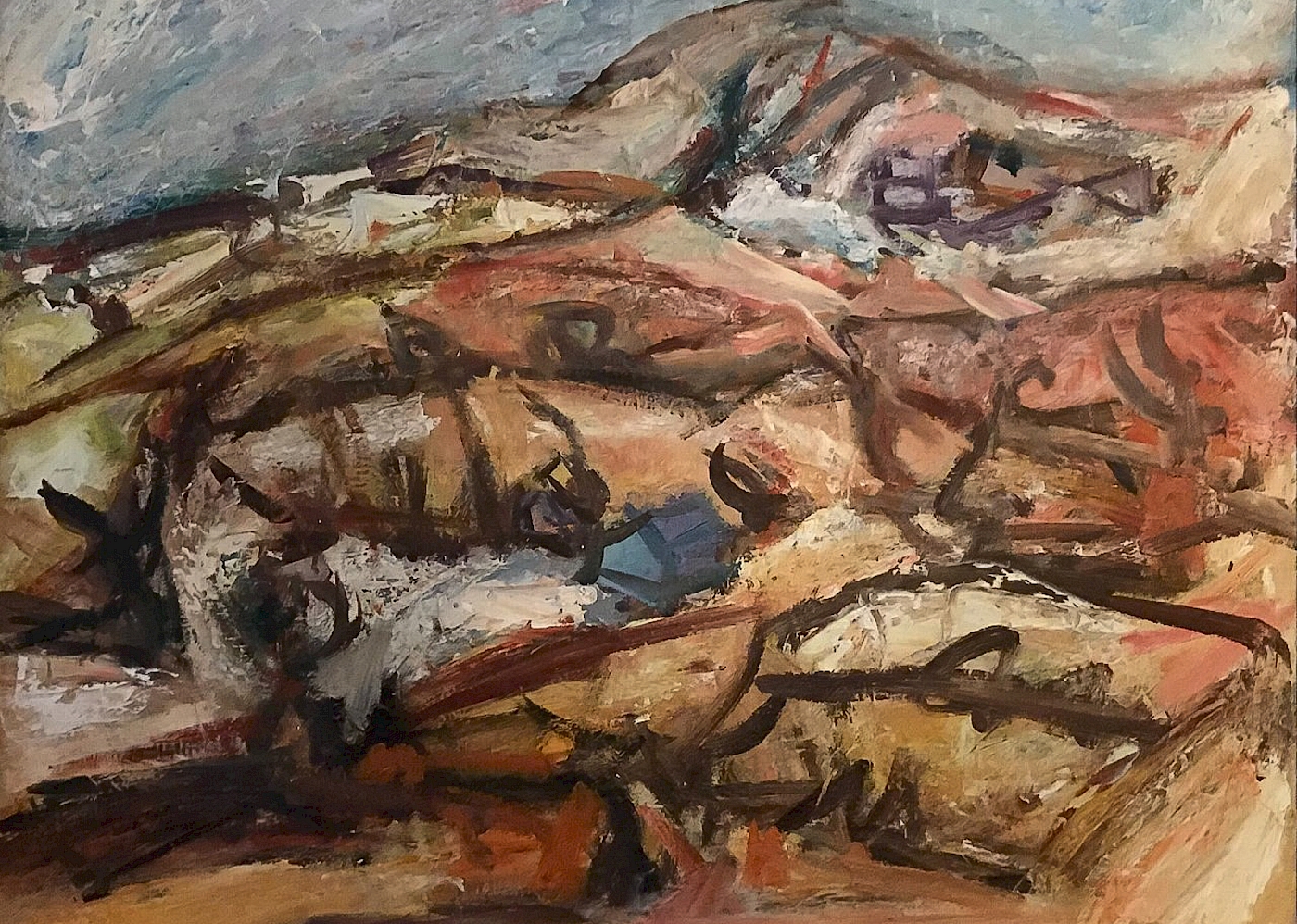 Every so often Dad (for the sake of this post) would 'give' us drawings or paintings. Sometimes this would be a verbal agreement, such as a Cork Cathedral painting, promised to Daisy years before but recieved on moving into her first property in 2006, and sometimes Dad would turn up to visit with a painting under his arm. This painting was painted from the studio in Deiniolen. On Christmas Eve, 2003, Dad turned up at his eldest son, Owein's house with this painting. As such it always reminds us of Christmas.