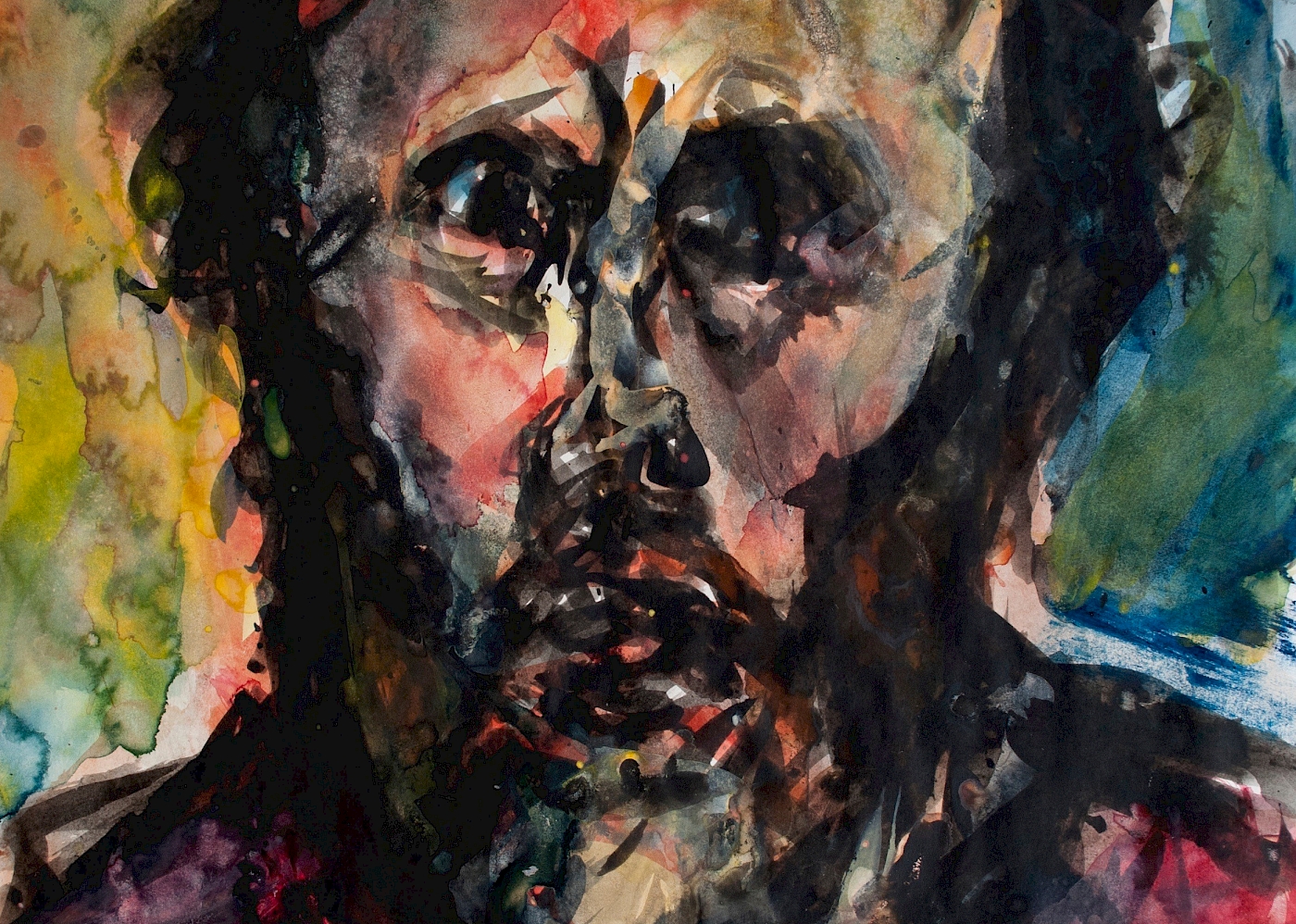 Its been a while since we've posted a self portrait and always enjoy sharing one to mark Peter's date of birth (27th October). Unusually this portrait has been executed in coloured ink.