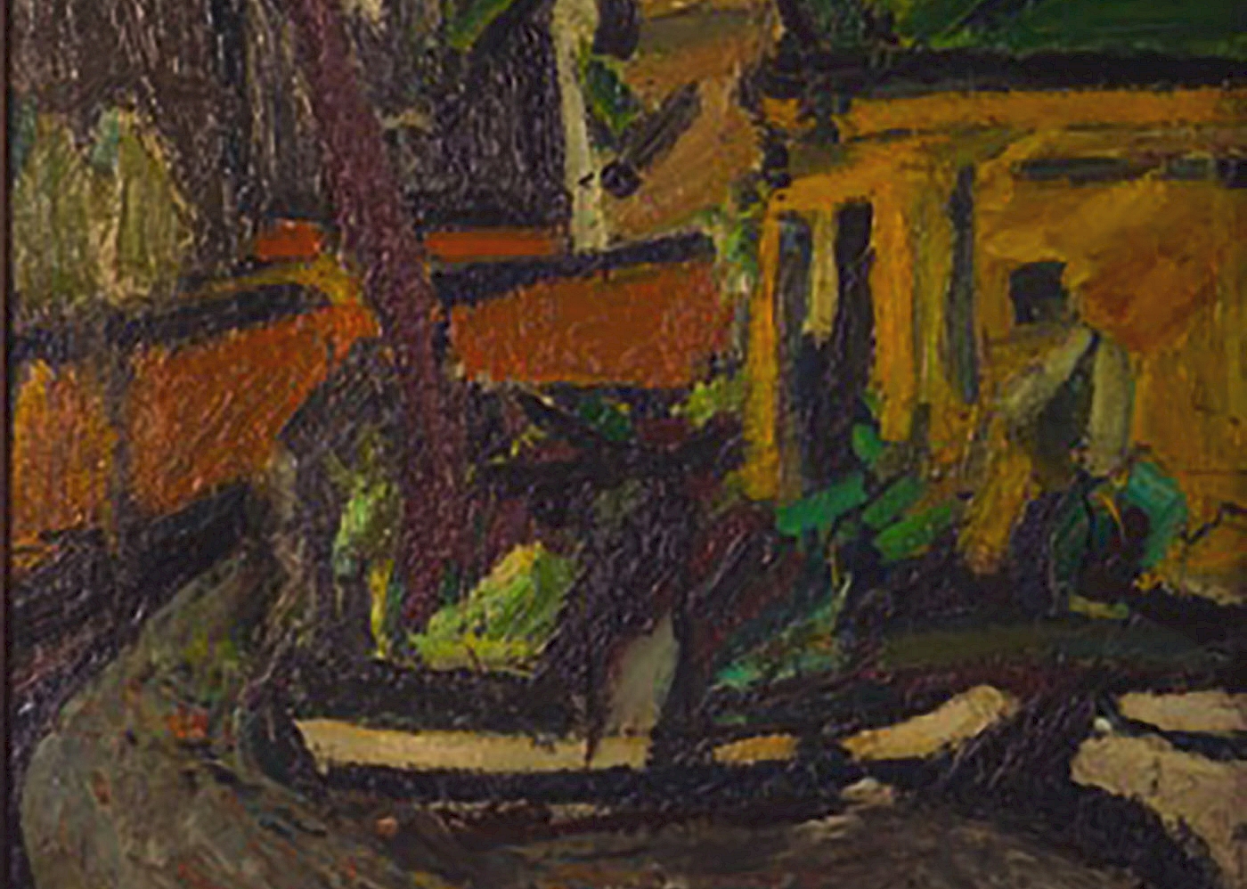 April's work of the month is titled 'Cartwright Gardens', 1967, Oil on board. In Peter's final year at the Slade he lived in the Slade hostel, Cartwright Gardens near King's Cross. He was keen to finish this painting for his final show and struggled with it for months. Arriving home from the pub one evening Peter found half the painting had quite literally fallen off the board onto the floor! When he finally took it into college his tutor Frank Auerbach saw the painting and said 'well, it looks as though you may have finally done something!'