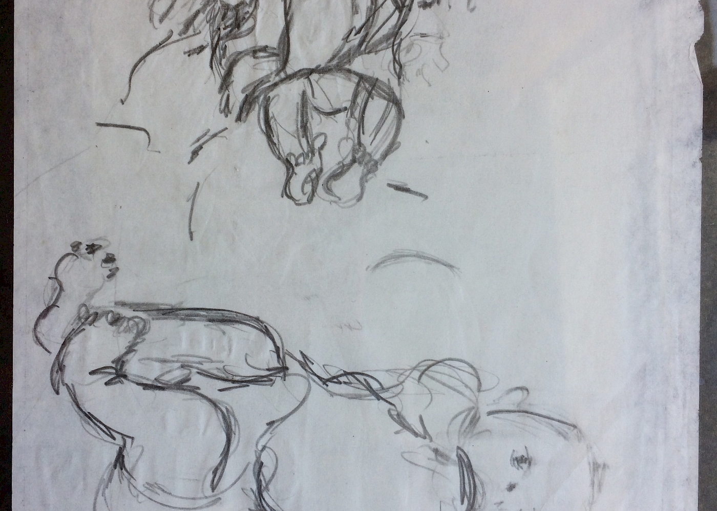 Peter drew constantly throughout his life. He was pre-occupied with observing the world around him; primarily in the form of landscape. However a large body of his work is made up of drawings of his family at different stages in their lives. Being the youngest Daisy complained that he had never drawn her! After much searching Lesley found these drawings titled 'Daisy two weeks old' after he died. This sketchbook drawing will be 40 years old this month.