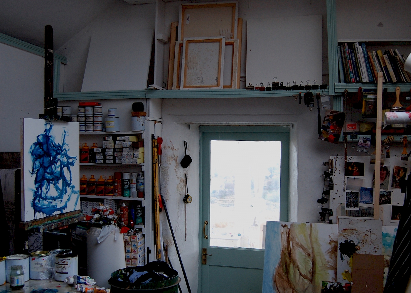 This month's image is one of Peter's studio as it looked at the time of his death. As a family we wanted to document the studio as it was. Daisy, Peter's youngest daughter, took a series of photographs from the studio in Dinorwic shortly after his death. These photographs show work in progress as well as the views seen from his newly built 'conservatory' space. All images can be seen in the galleries pages of this website.